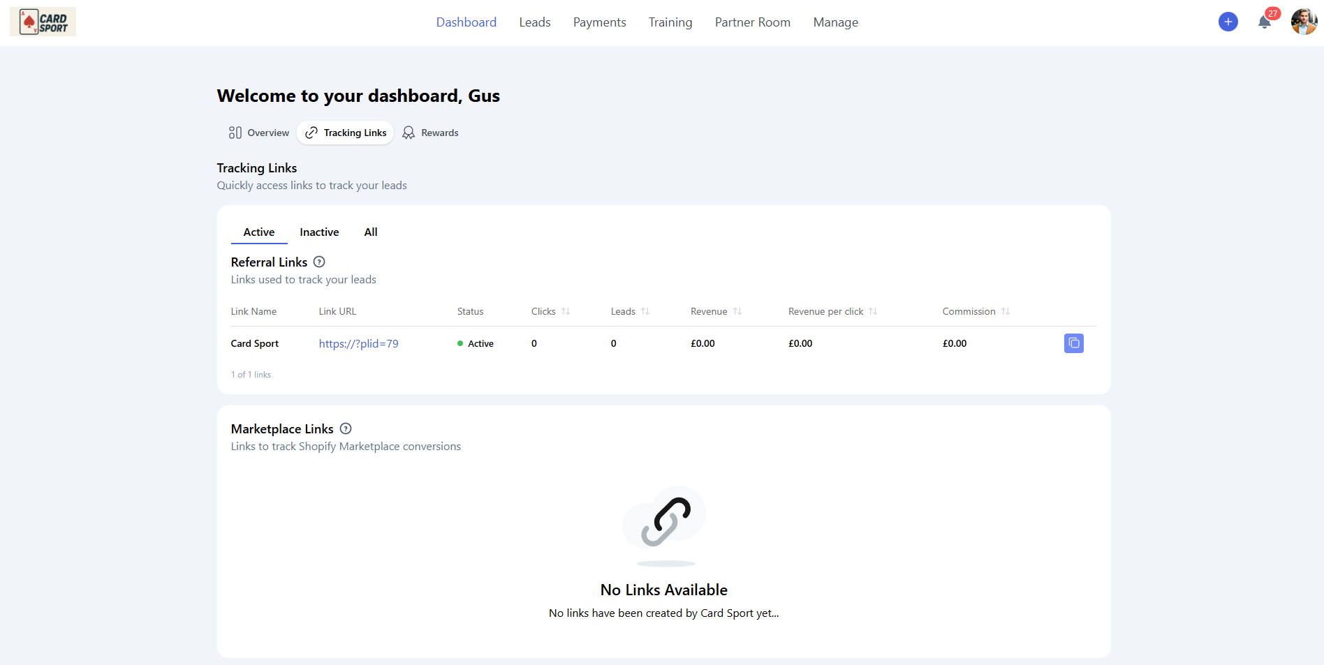 Your tracking links are the foundation of successful referral marketing. This tab shows:
