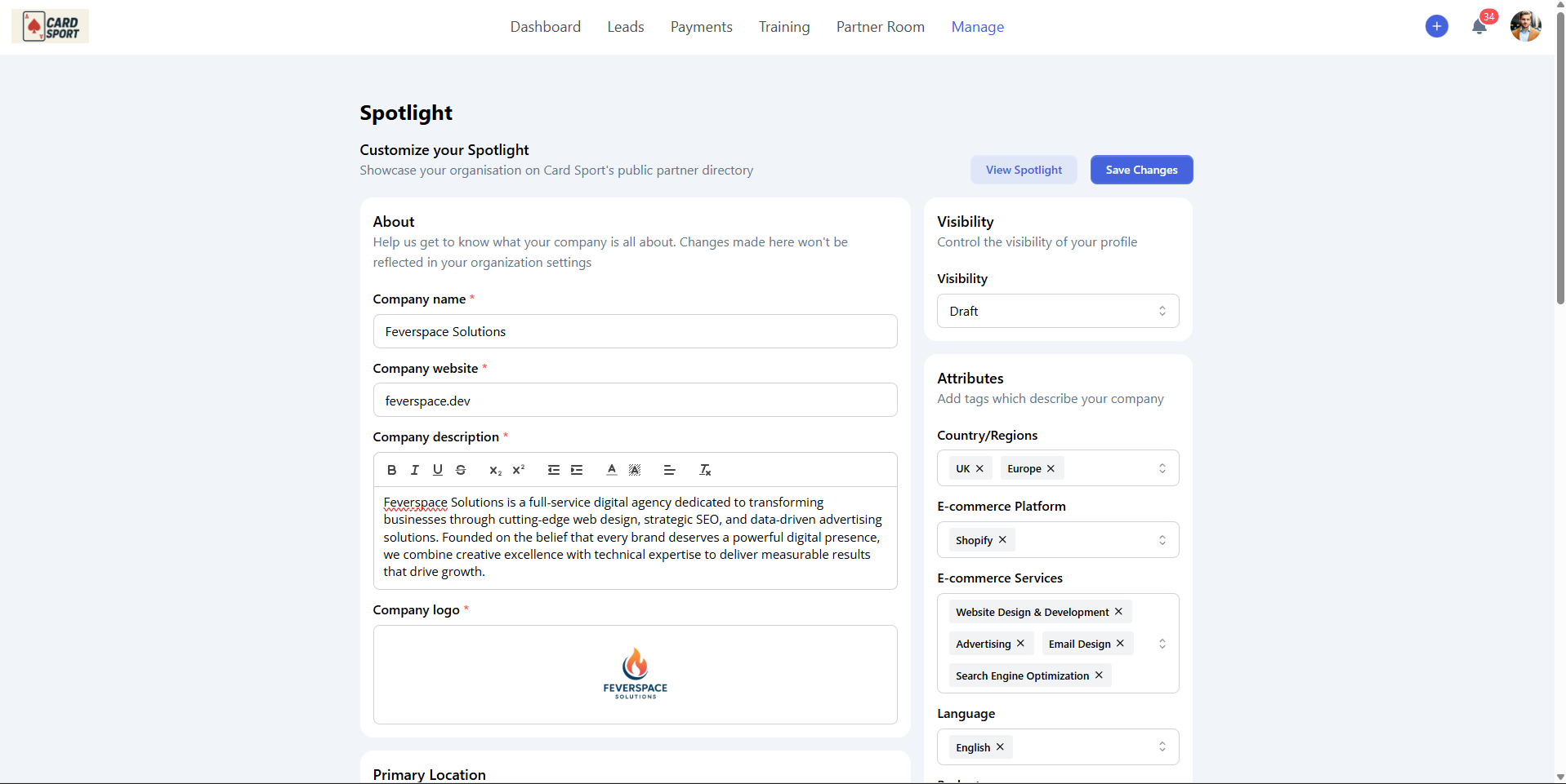 This profile helps potential customers find and connect with partners who match their specific needs and requirements.