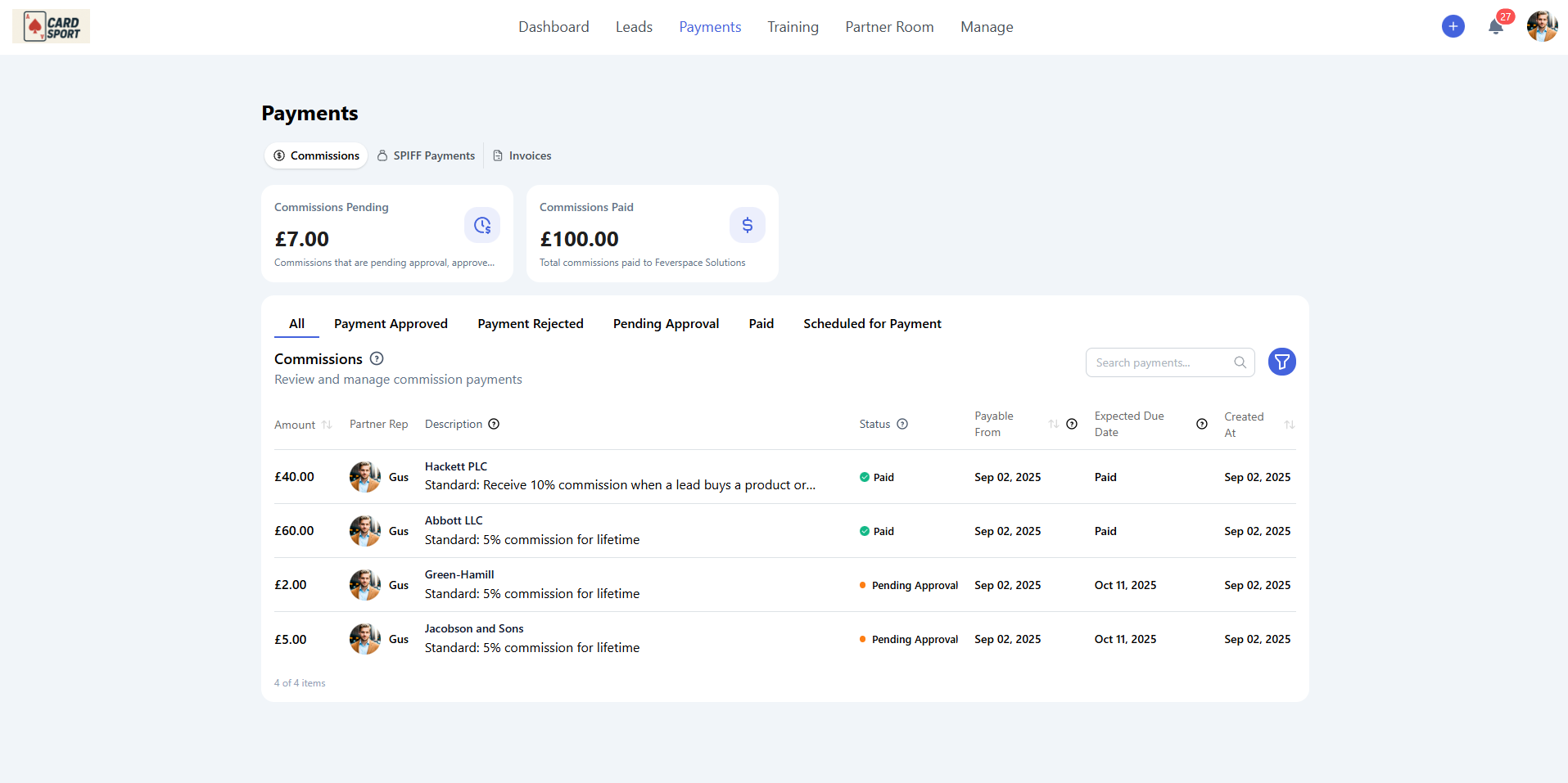 About Commissions: Commission payments are determined by the tier assigned to your partnership, which outlines your percentage share of revenue and how it is triggered within the deal pipeline.